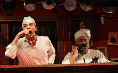 Aquest parell ens ofereixen un espectacle que barreja el circ i la màgia. Malabars amb verdures, equilibris amb muntanyes de pizzes, números de màgia amb menjar, participació del públic... i sobretot molt d'humor i la millor música italiana.